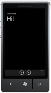 <shell:ApplicationBarIconButton IconUri=”/Images/appbar_button2.png” Text=”Button 2″/>
