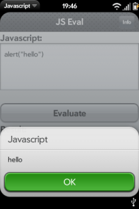 This is a handy utility to execute javascript within the context of your Palm WebOs mobile phone. It also includes the PhoneGap API, so you can test the advanced features offered by that platform.