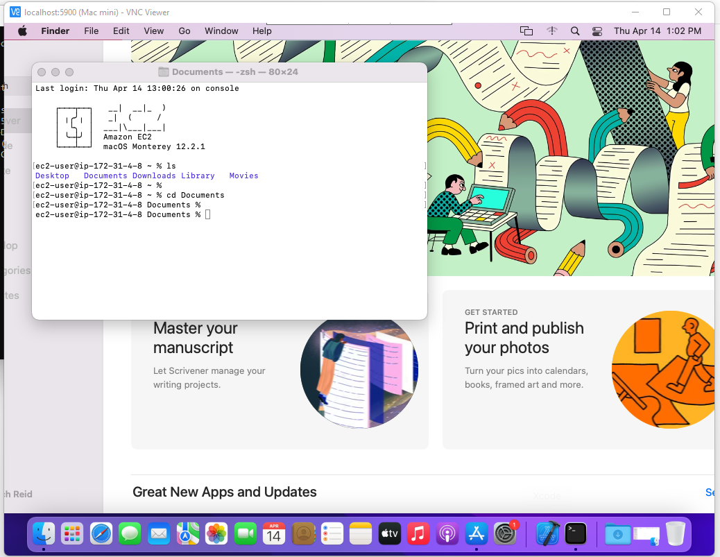 2. Run the following command to install and start VNC (macOS screen sharing SSH) from the Mac instance